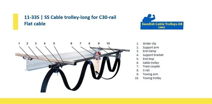 11-33S | SS Cable trolley-long for C30-rail. Flat cable